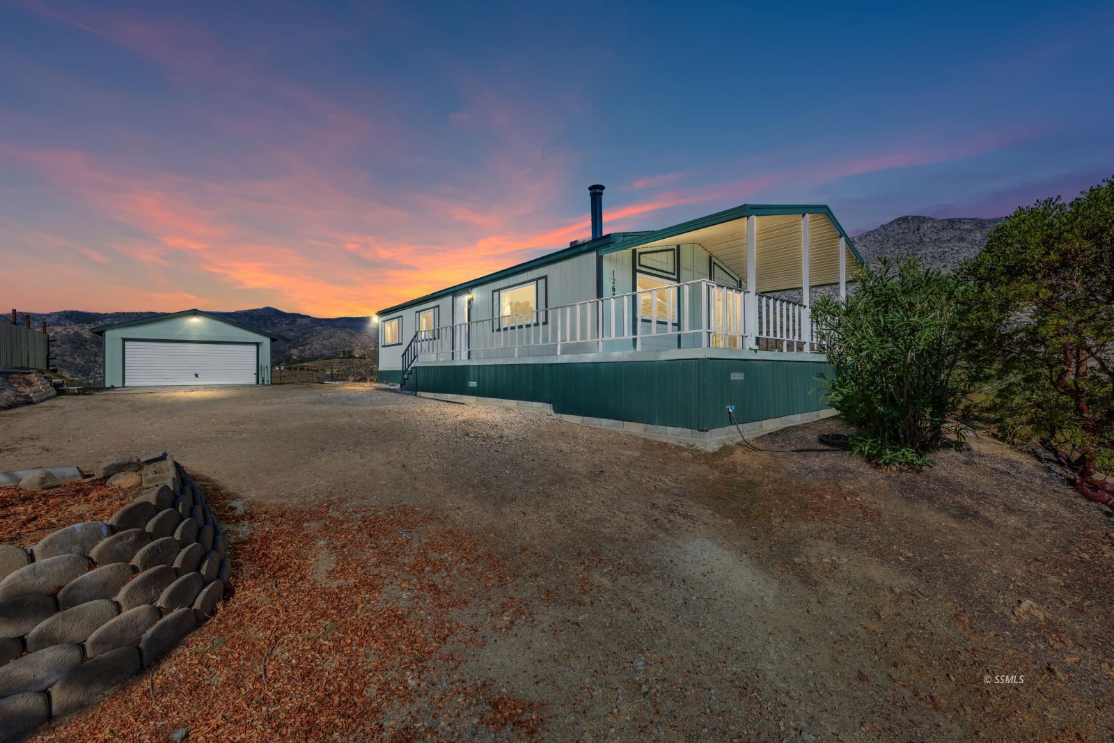 This remodeled manufactured home is now ready!! Since 2023 it has been transformed with a brand new septic, A/C, water heater, vinyl floors, bar top, lighting, all doors and fully remodeled kitchen and bathrooms. The new appliances have never been used except for testing; refrigerator, stove, dishwasher, vent, garbage disposal. During the window replacement, some screens were eliminated to enhance the view, making them true picture windows. A woodstove in the living room. The fire safe perimeter zone was firmly established. The detached two car garage is lined with commercial grade shelves. And, finally, this is not some random cut out perch. This home sits towards the front of Bristlecone Ridge, a geological spectacle that makes the views magical. This 2 bedroom 2 bath is on a permanent foundation system and ready for financing. Come take a look for yourself.