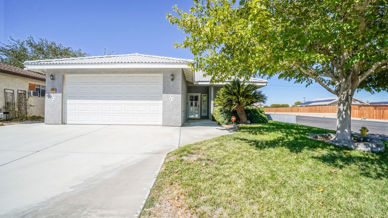 Welcome to this beautiful 4 bedroom, 3 bathroom, 1,881 square foot Corner Lot property located in the charming Ridgecrest Heights! This property features TWO suites which come with their very own bathrooms! As you approach the home you will be greeted by a beautiful lush green lawn and tree. Property has both AC and Evaporative cooling with a Tile Roof! Once inside, you will be in the Great Room which includes the Living Room and Dining Room. Both of which have ceiling fans and laminate plank flooring. Kitchen comes with recess lighting, NEW Quartz countertops, and a walk-in pantry. Suite #1 is off of the Kitchen and has Carpet flooring and a walk-in closet. All bedrooms come with carpet flooring, ceiling fans and dual pane windows. Suite #2 is at the end of the hall on the living quarters side. Both Suite bathrooms have shower inserts and NEW Quartz countertops. Hall Bathroom has a tub/shower insert and Quartz countertops. Rear yard has an enclosed patio with wired in speakers and a ceiling fan. Rear yard has artificial grass with an outdoor garden drain. Storage shed included. Gas is plumbed for BBQ. 2-car garage has a new garage door operator! Smart home ready!